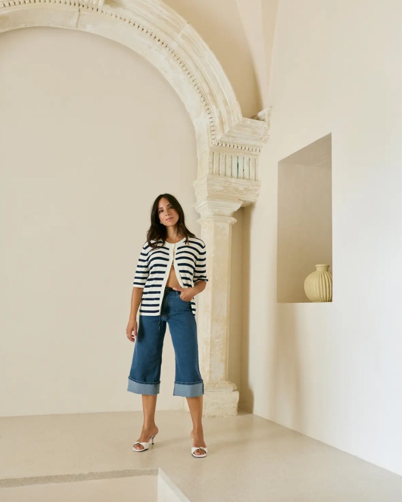 Smarte culottebukser fra Vila i en flot mellemblå denim. Et godt alternativ til dig, der ikke er til korte shorts, men stadig ønsker et let og sommerligt look. Den høje talje og de brede ben giver en afslappet og moderne pasform.