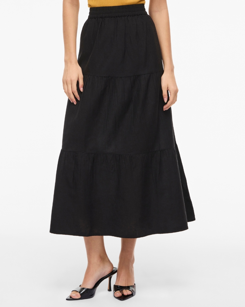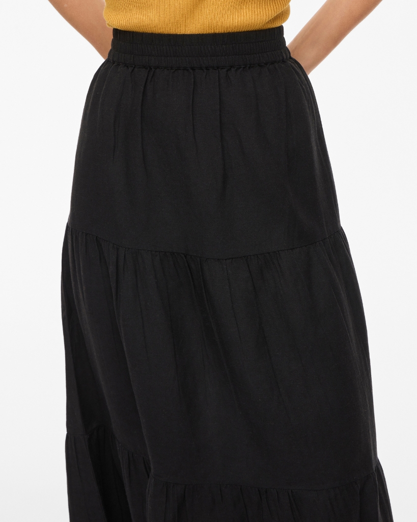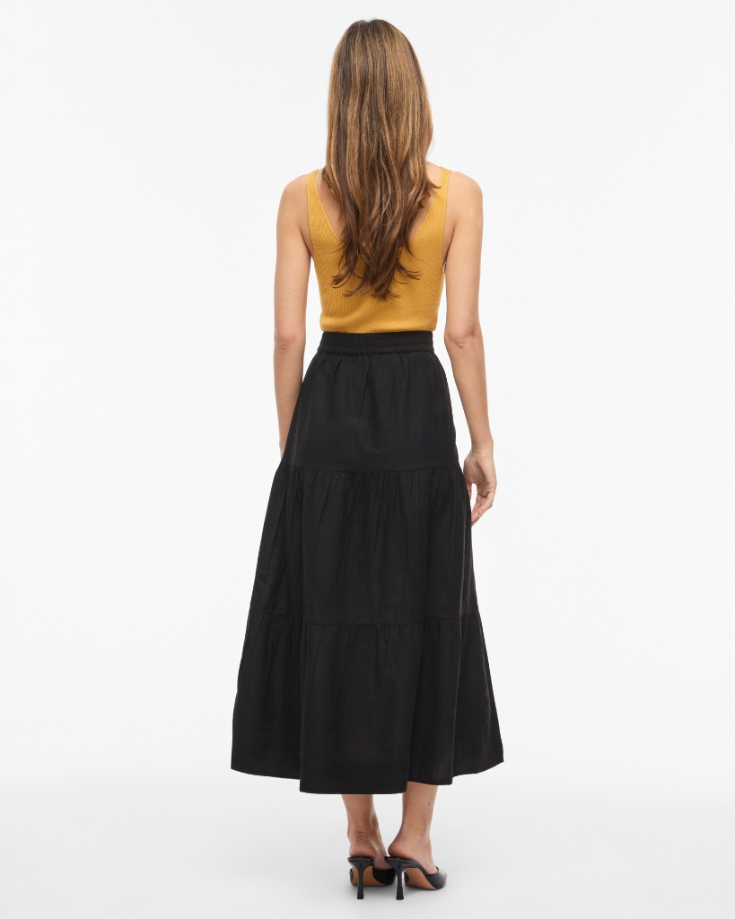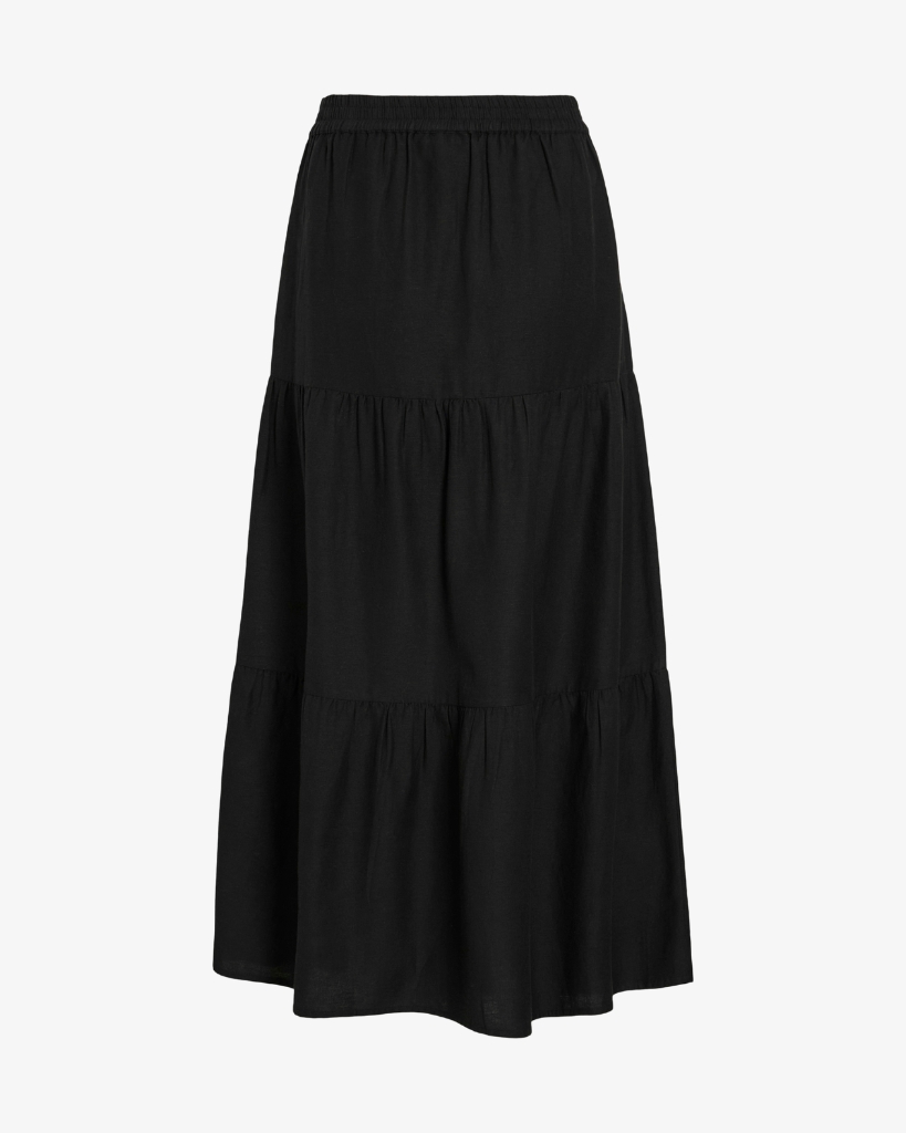 Feminin og let nederdel fra Vila med flot fald og blød struktur. Den elastiske talje giver en behagelig pasform, mens designet opdelt i lag skaber bevægelse og et afslappet udtryk. En enkel model med fine detaljer.