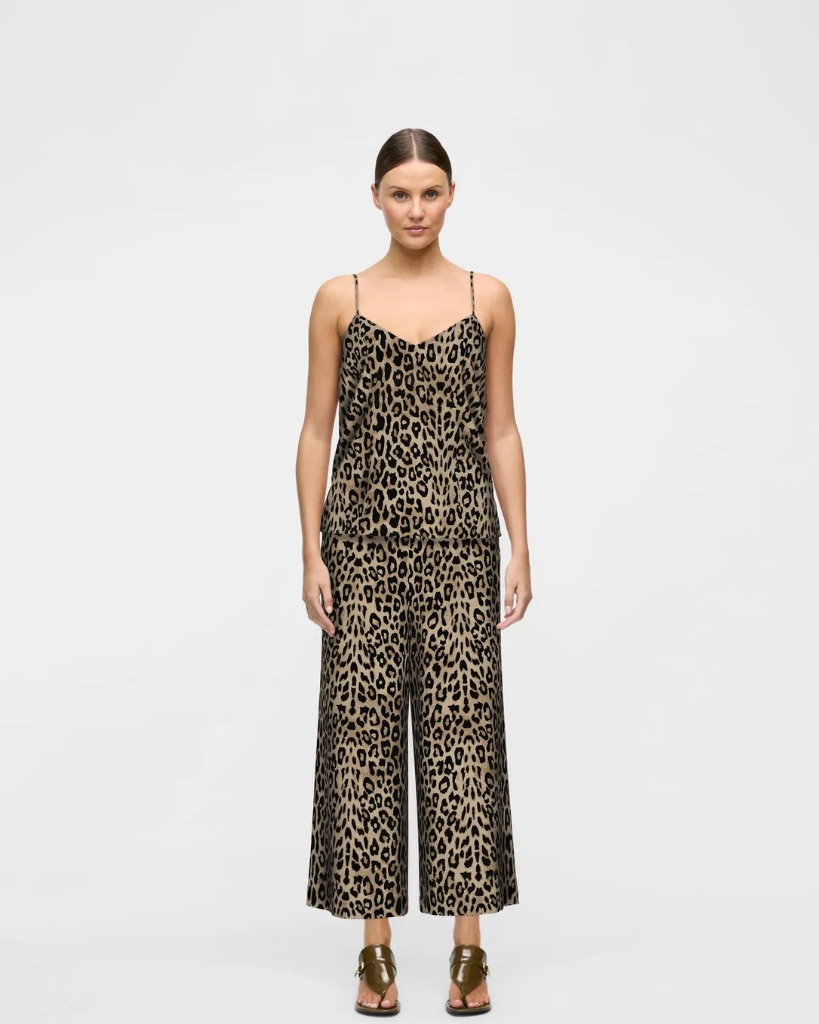 Stilfulde culotte bukser fra VILA med markant leopardprint og en let, luftig kvalitet. Modellen har brede ben og elastik i taljen bagpå, som giver en behagelig pasform. Et iøjnefaldende design med flot fald i stoffet.