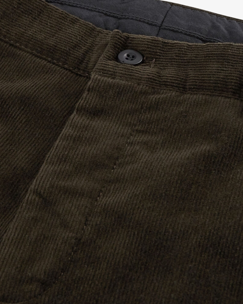 En klassisk chino med et elegant tvist i blød fløjl. Bukserne har en moderne pasform og et tidløst design, som gør dem nemme at style til både skjorte og strik. Komfortable og alsidige – et sikkert valg i garderoben.