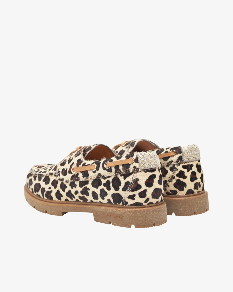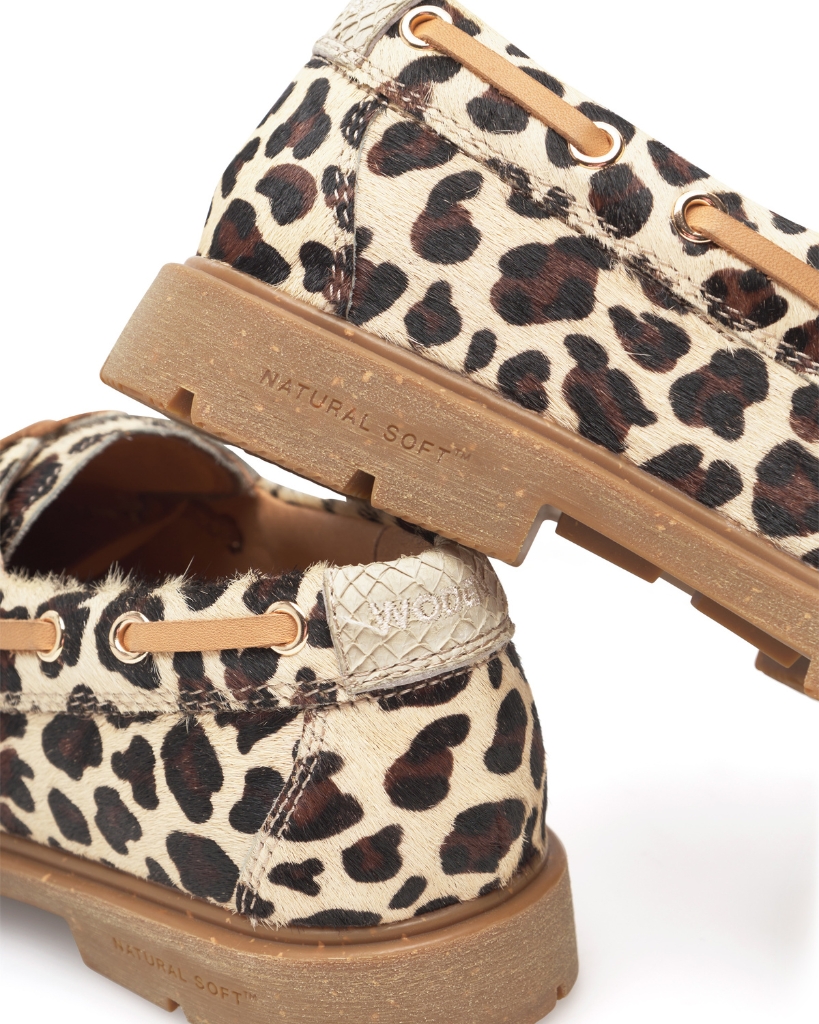 Johanne Animal fra WODEN er en moderne fortolkning af den klassiske sejlersko. Skoen er fremstillet i eksklusivt koskinds-læder med leopardprint, som giver et markant og stilfuldt udtryk. Den fleksible sål med WODEN Natural Soft Technology giver behagelig komfort og støtte i hvert skridt. Vi anbefaler, at du vælger din normale størrelse.