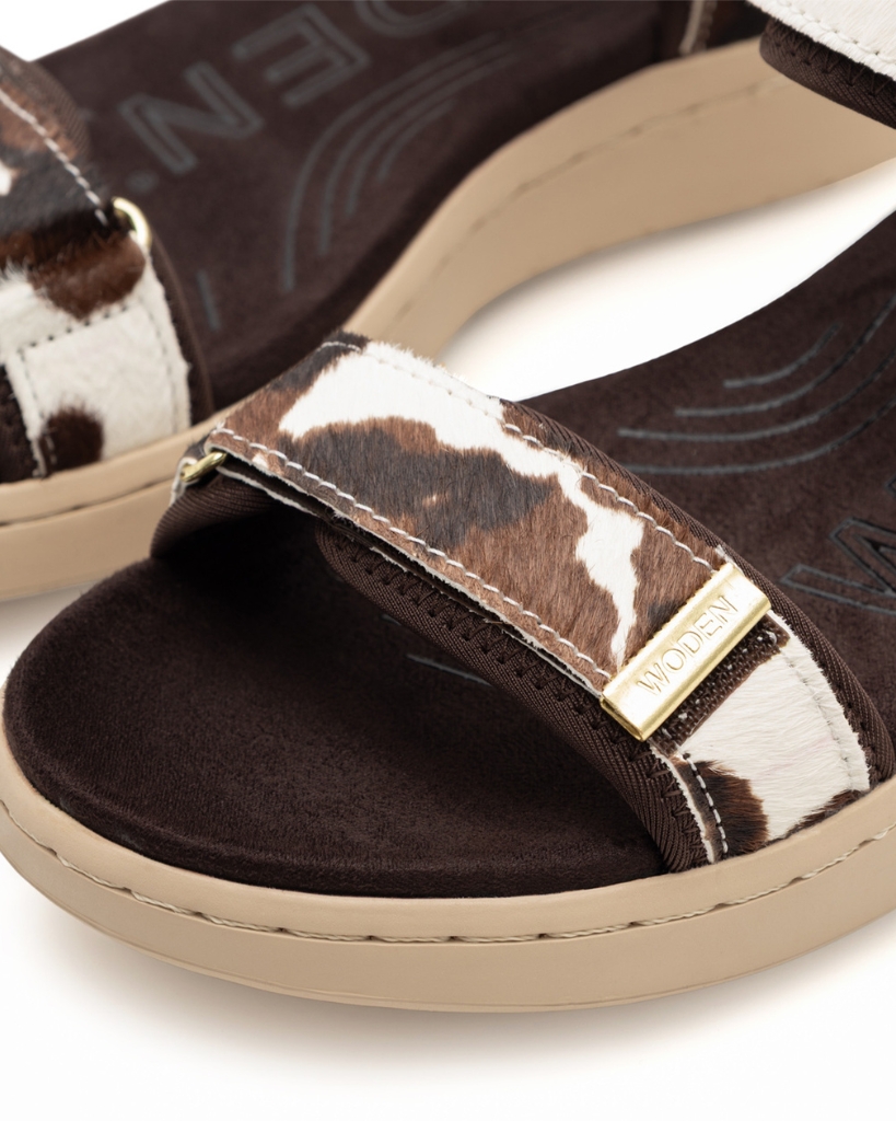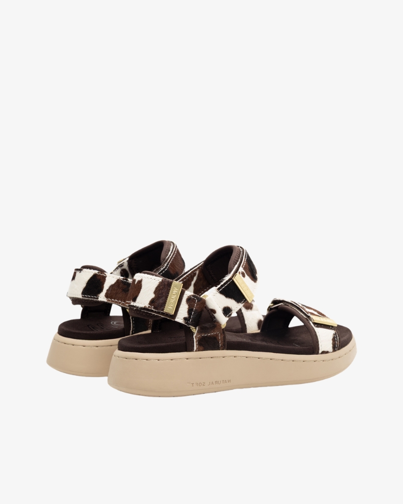 Line Animal er en sandal med markant ko-print og et eksklusivt udtryk. De tre justerbare velcrostropper giver en fleksibel pasform, mens den anatomisk formede fodseng sikrer god støtte hele dagen.