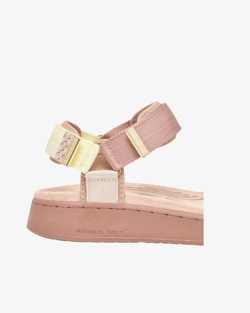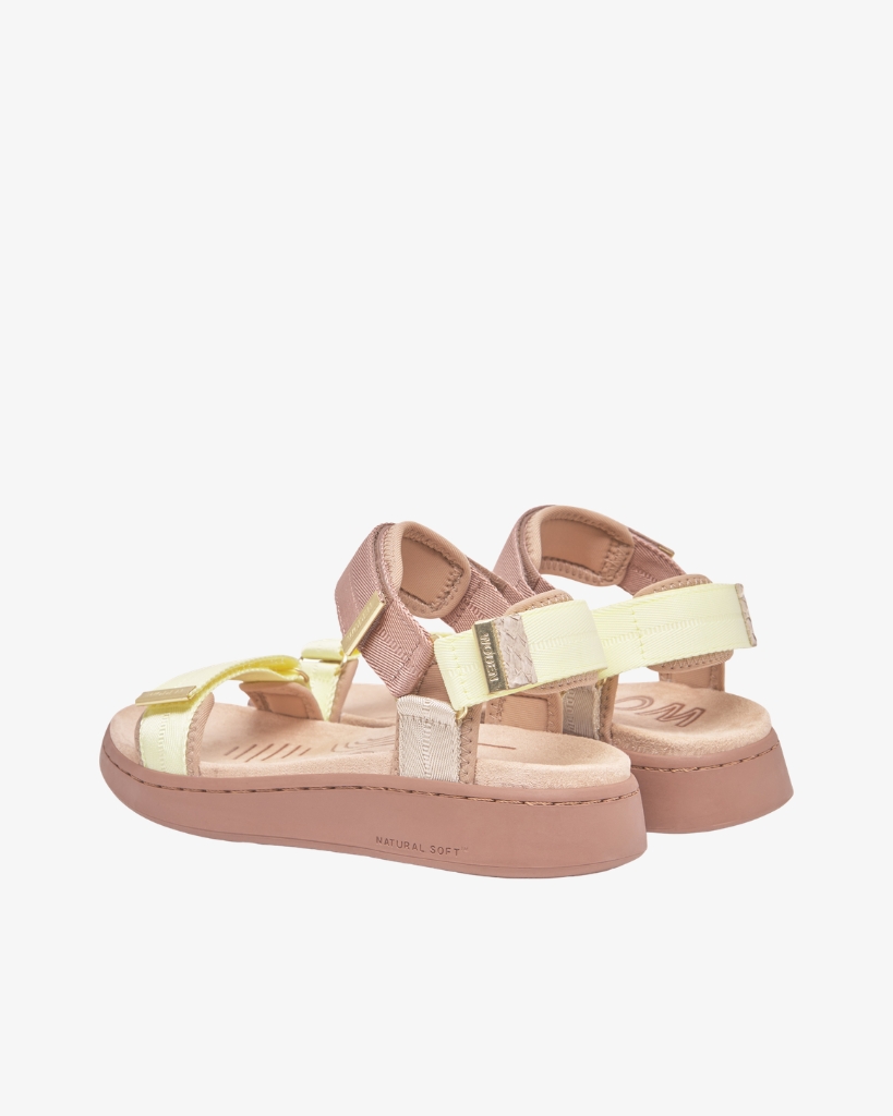 Line Tricolor er en let og farverig sandal med bløde pasteller og et moderne udtryk. De tre justerbare velcroremme sikrer en god pasform, mens den anatomisk formede fodseng giver behagelig støtte. Natural Soft teknologien bidrager til høj komfort og åndbarhed hele dagen.